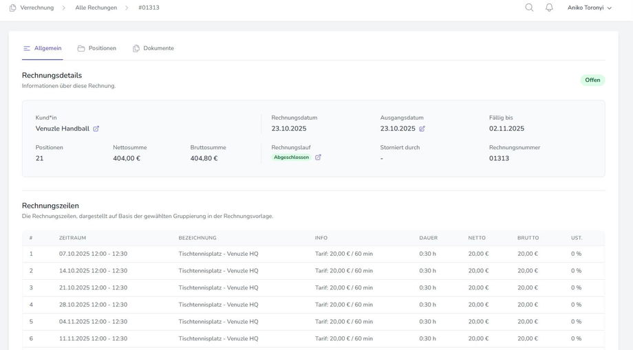 Wenn man auf den „Details“-Button neben einer Rechnung klickt, öffnet sich die Detailansicht der Rechnung, in der alle Informationen zu dieser Rechnung angezeigt werden.