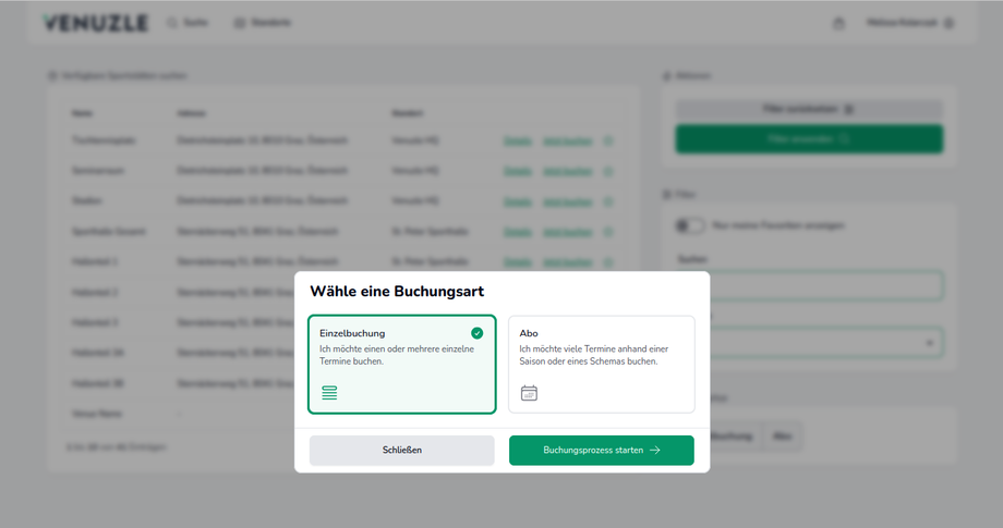 Über den Venuzle Manager haben Sie die Möglichkeit ein Kundenportal für externe Buchungsanfragen einzurichten und zu konfigurieren.
