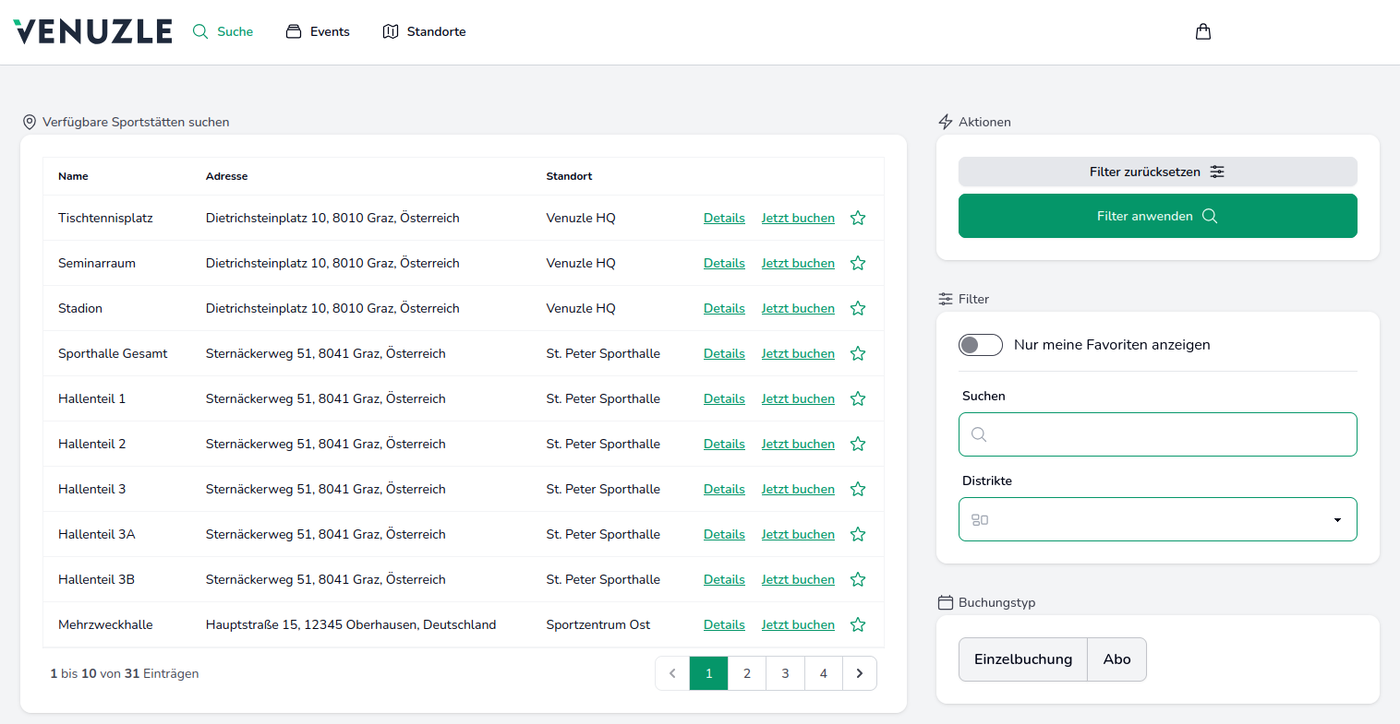 Die benutzerfreundliche Oberfläche und einfache Bedienung machen die Buchung von Sportstätten und Events schnell und unkompliziert.