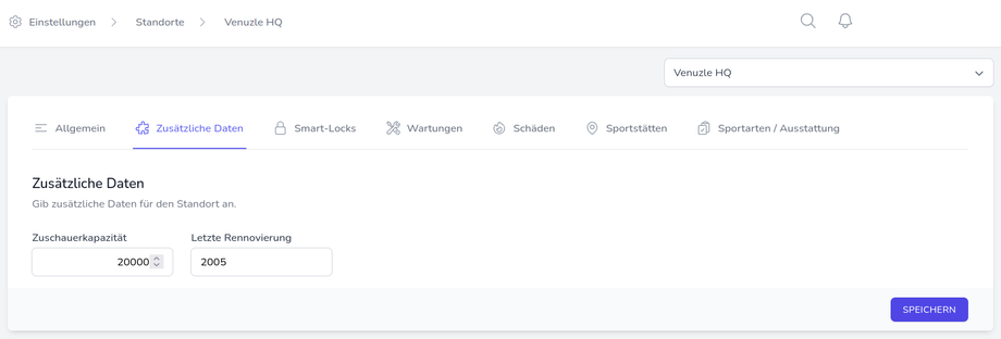 In den Einstellungen des Venuzle Managers haben Sie die Möglichkeit Zusatzfelder zu erstellen und zu verwalten. Diese ermöglichen das individuelle, bedarfsgerechte Speichern und Abrufen von Informationen und Daten. Zusatzfelder können beispielsweise für die Ebenen Personal, Kunden, Sportstätten bzw. Standorte, Inventar oder auch Buchungen verwendet werden.