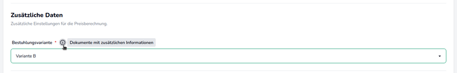 In diesem Beispiel wird das ausgewählte Zusatzfeld nur angezeigt, wenn im vorherigen Auswahlschritt die Belegungsart A ausgewählt wurde.
