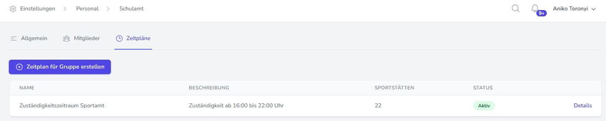 Für jede Gruppe können individuelle Zeiträume festgelegt werden, in denen Buchungen eingesehen und bestätigt werden können.