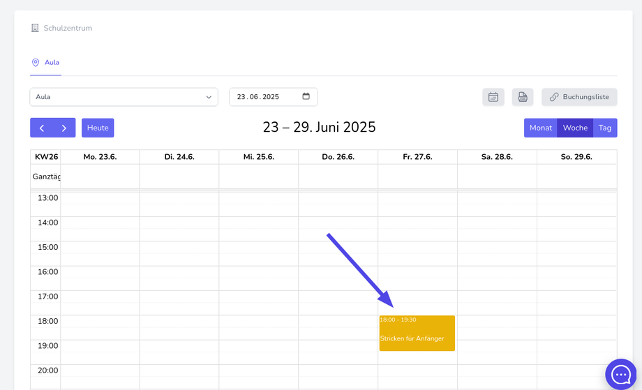 Option 4: Ein Event kann auch direkt über die Kalenderansichten gebucht werden. Klicken Sie dazu einfach auf den Event-Termin im Kalender. Diese Option eignet sich vor allem für Events, deren Termine auch einzeln buchbar sind.