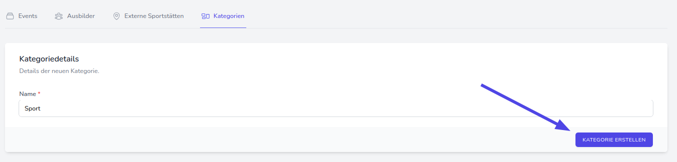 Die neue Kategorie ist nun angelegt und kann ab sofort den Events zugeordnet werden.