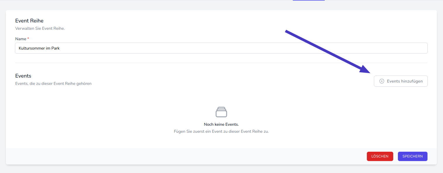 Klicken Sie in der soeben angelegten Reihe auf die Schaltfläche “Events hinzufügen”.