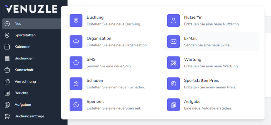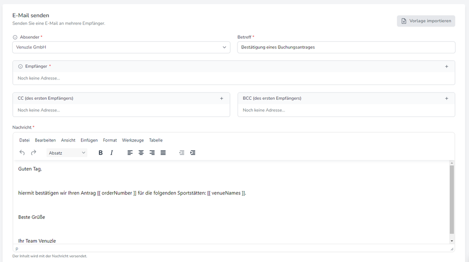 Im Venuzle Manager hat man die Möglichkeit E-Mails direkt zu verschicken. Diese können an eine oder auch mehrere Personen gesendet werden.