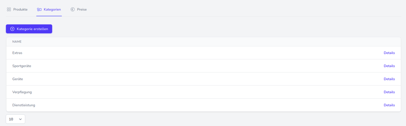 Zur besseren Übersichtlichkeit des Inventars können verschiedene Kategorien angelegt werden. Diese ermöglichen es, buchbare Zusatzprodukte gezielt zu ordnen und zu filtern.