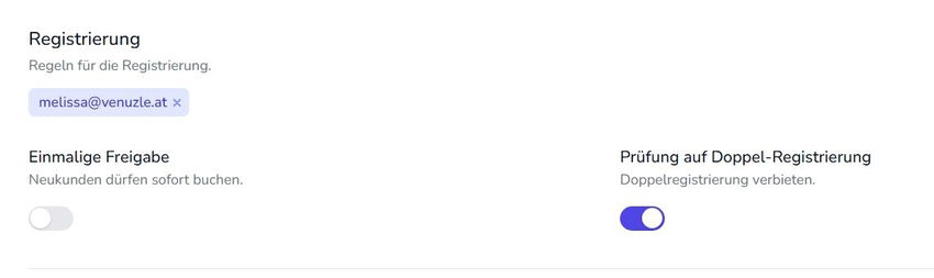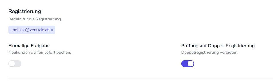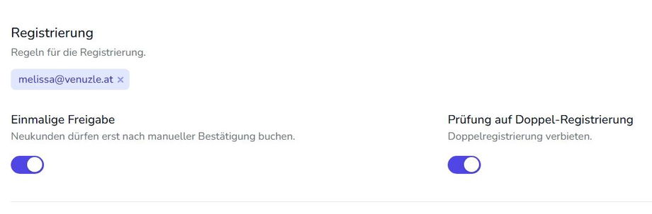 Wenn Sie möchten, dass neue Nutzer:innen sofort nach der Registrierung Buchungen vornehmen können, ohne dass vorab eine manuelle Bestätigung notwendig ist, aktivieren Sie die automatische Freigabe.