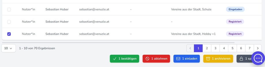 Nach der Registrierung erscheint die neue Person in der Liste der Nutzer:innen.