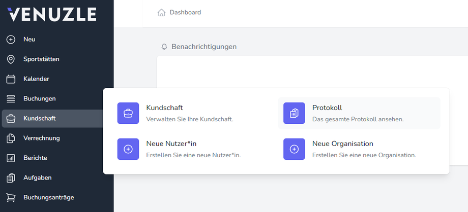 Um das Kunden-Protokoll aller Kunden anzusehen klickt man unter "Kundschaft" auf den Quicklink "Protokoll".