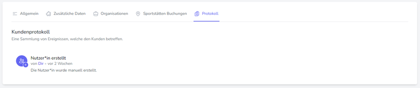 Dann öffnet sich eine Übersicht über alle Aktualisierungen und Erstellungen von Kunden. Diese sind in einer Liste chronologisch geordnet, beginnend mit der neuesten.