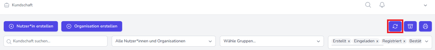 Unten ist sichtbar, wie viele Bestellungen bei der Nutzer*in bzw. der Organisation existieren. Mit Klick auf den Button “Buchungen übertragen” erfolgt die Übertragung der Buchungen sowie die Archivierung von Nutzer*in/Organisation A.