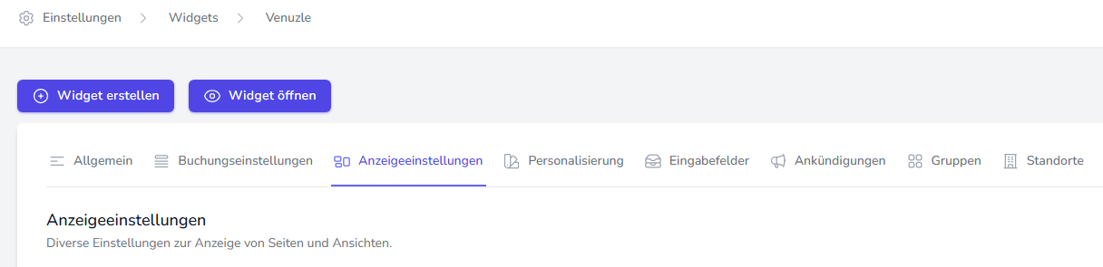 In den “Einstellungen” → “Widget” können unter dem Reiter “Anzeigeeinstellungen” diverse Einstellungen zur Anzeige von Seiten und Ansichten im Widget vorgenommen werden.